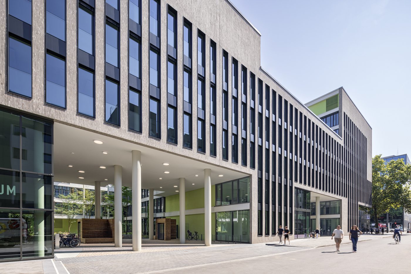 As diferentes alturas existentes dos edifícios do entorno são incorporadas por meio de alturas escalonadas diferenciadas. Isso confere à estrutura escultural um desenvolvimento de altura em degraus que cria pontos urbanos altos nos cantos e, simultaneamente, permite uma iluminação otimizada dos pátios. Estes pátios são conectados ao espaço urbano por grandes passagens de dois pavimentos.