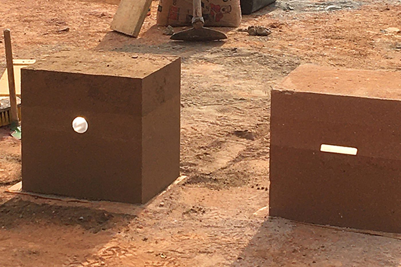 A proposta expositiva prevê discutir a possibilidade da construção em larga escala com elementos pré-fabricados em terra e palha para um caminho de construção sustentável realizável, de modo facilitado.