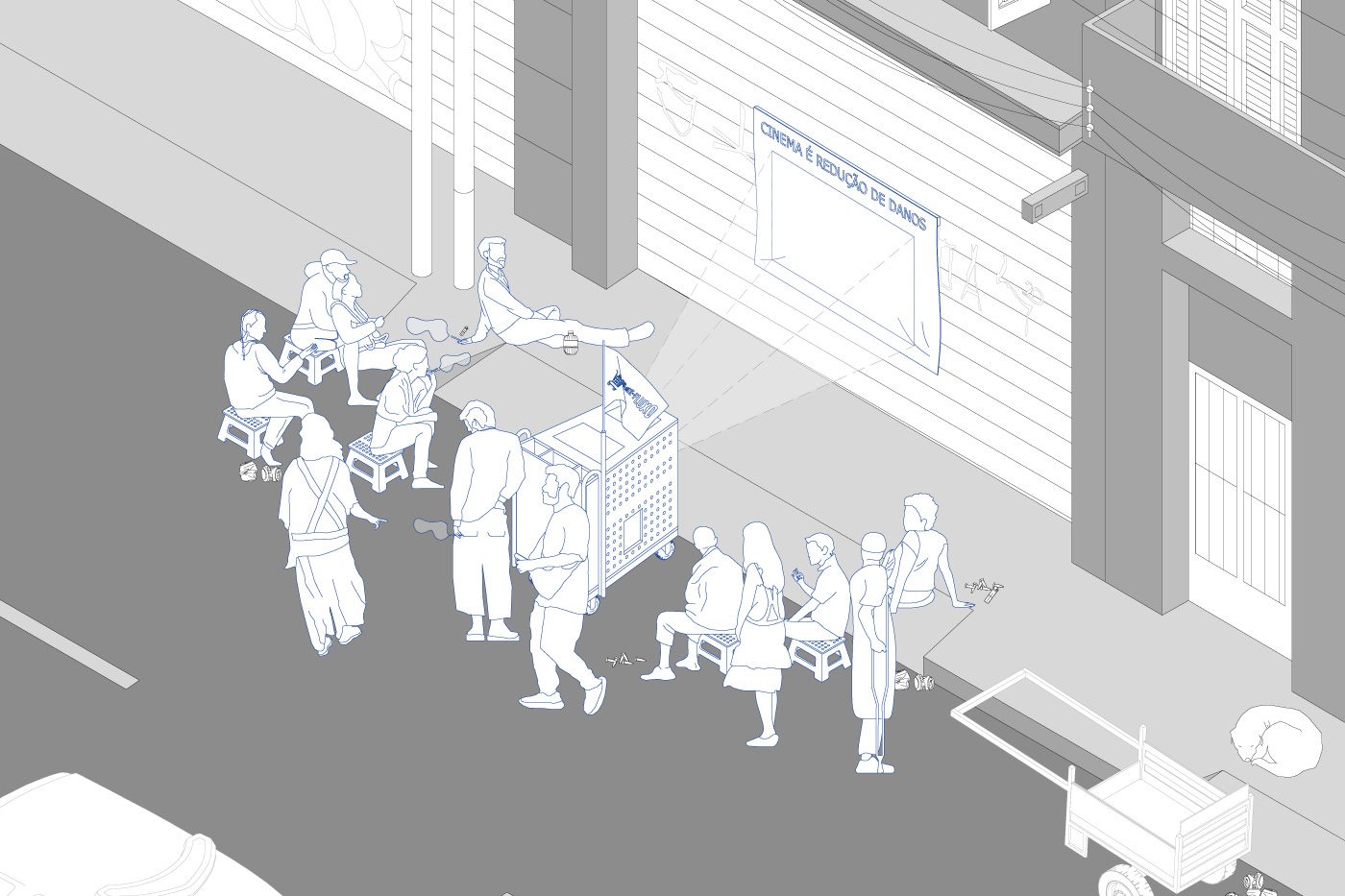 O Cine Fluxo é um coletivo de cinema independente que trabalha com redução de danos através de exibições de obras audiovisuais no fluxo da Cracolândia, localizado no bairro da Luz.