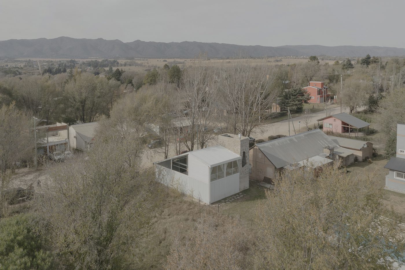 A Casa Lelis está localizada em Los Reartes, uma comunidade nas montanhas de Córdoba, Argentina, onde a arquitetura tradicional é caracterizada por paredes de pedra e telhados leves feitos de gravetos e chapas metálicas. Nesse contexto, o projeto respeita a tecnologia local e sintetiza sua materialidade em elementos de concreto e brancos. Em um terreno de 10 x 30, a casa de 8 x 12 é organizada em faixas longitudinais que definem as áreas do térreo: serviço, sala de estar e galeria, sobre as quais os quartos no andar superior são sobrepostos perpendicularmente.