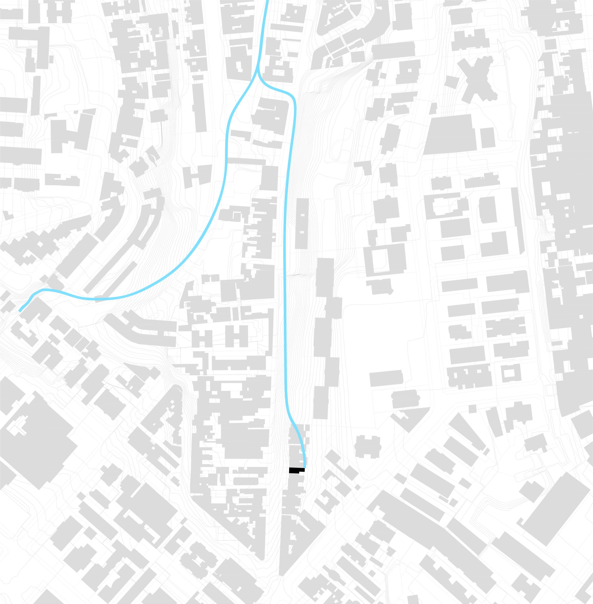 A nossa proposta para a 14ª Bienal de Arquitetura de São Paulo busca compreender o território do Bexiga a partir de seus aspectos físicos e geográficos. O ponto de partida é um vídeo em díptico: de um lado, a fonte é exibida continuamente; de outro, imagens da ocupação urbana sobre os córregos Saracura e Saracura Pequeno. Esses cursos d’água permanecem invisíveis, embora resquícios de sua existência se revelem na topografia, nos afloramentos, na vegetação e no desenho urbano.