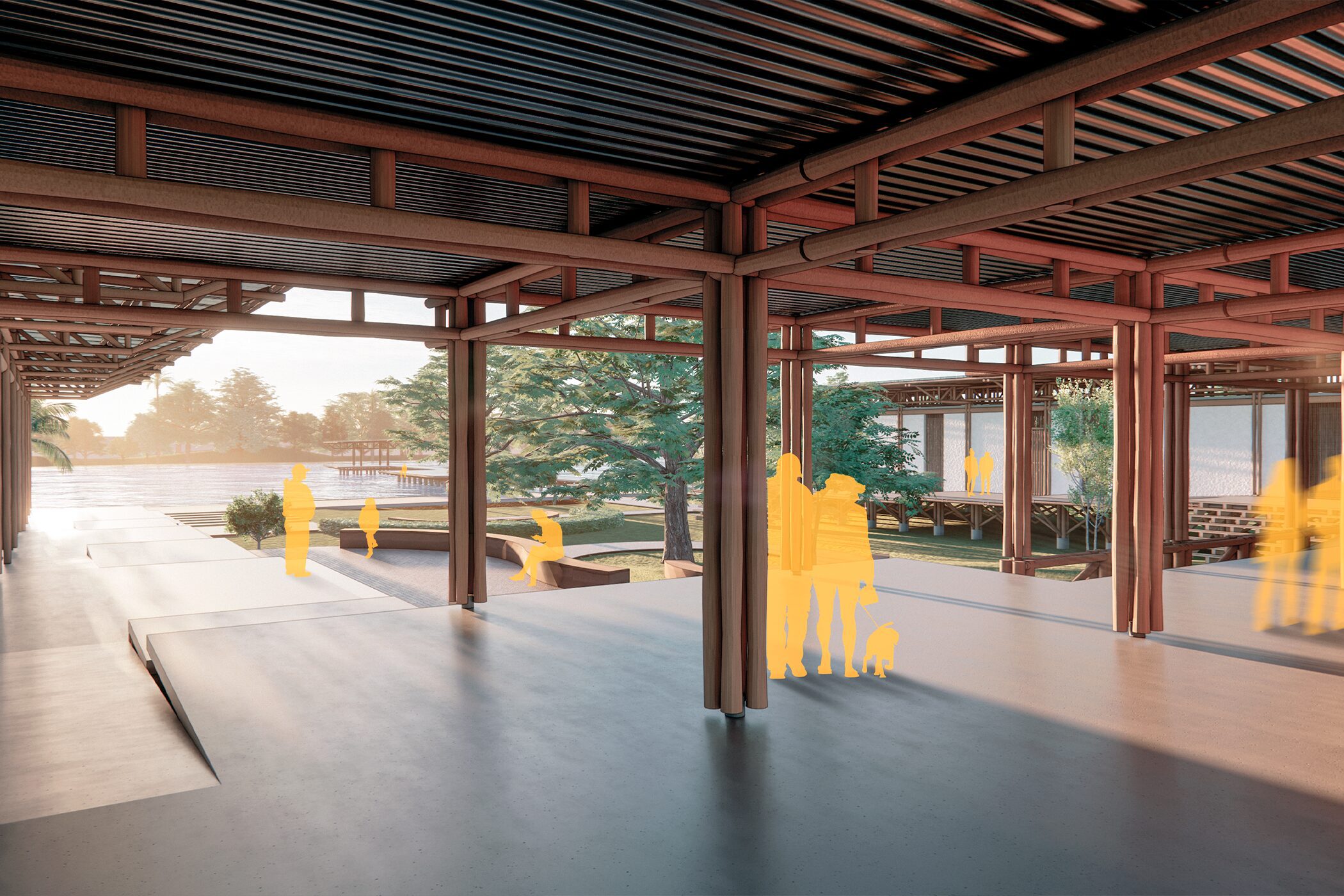 Propõe-se uma nova relação com a cidade e a natureza, onde lagoas e vegetação são vitais para conter a força das águas. Um caráter didático, de reeducação ambiental e resgate da relação com a água. A construção como capacitação, com ética social e ambiental, difusão de práticas e geração de renda. Programa afirmativo das culturas ribeirinhas, de povos originários e africanos ou venezuelanos com tradições suprimidas. Respeito.