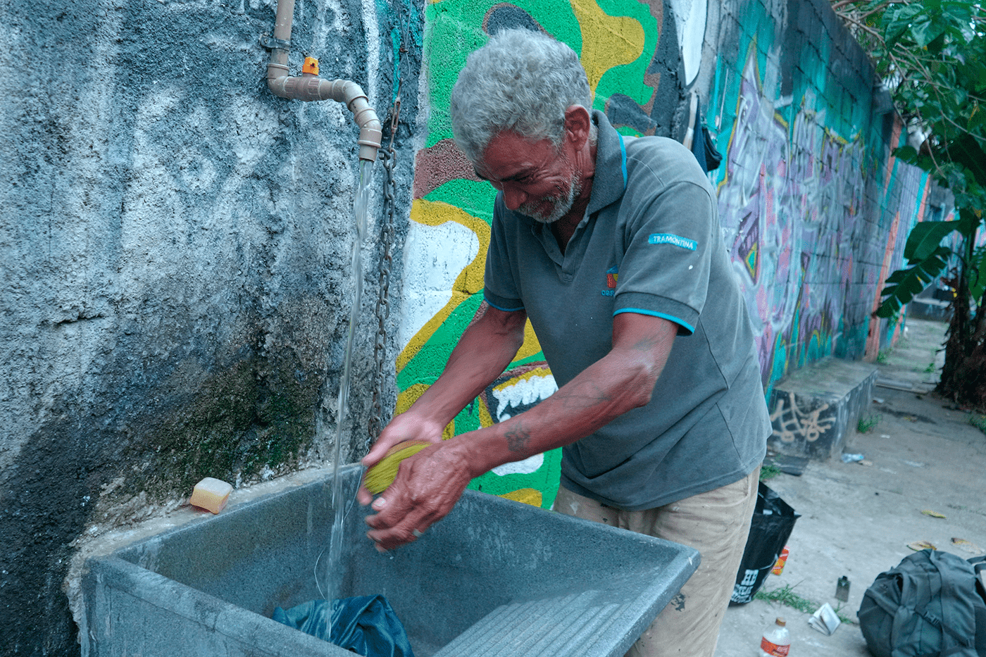 Conexão Água é um curta-documentário que parte da presença invisível do córrego Água Preta, soterrado sob camadas de concreto em São Paulo, para revelar como a água insiste em criar conexões – territoriais, ambientais e humanas – mesmo em contextos de apagamento. O filme atravessa diferentes cenas em que a água se torna protagonista: a nascente que resiste e alimenta um lago comunitário; a aula realizada numa viela, em que estudantes se deparam com um rio que corre oculto sob seus pés; a realidade cotidiana de moradores em situação de rua que, privados de teto, estão também privados de torneira.