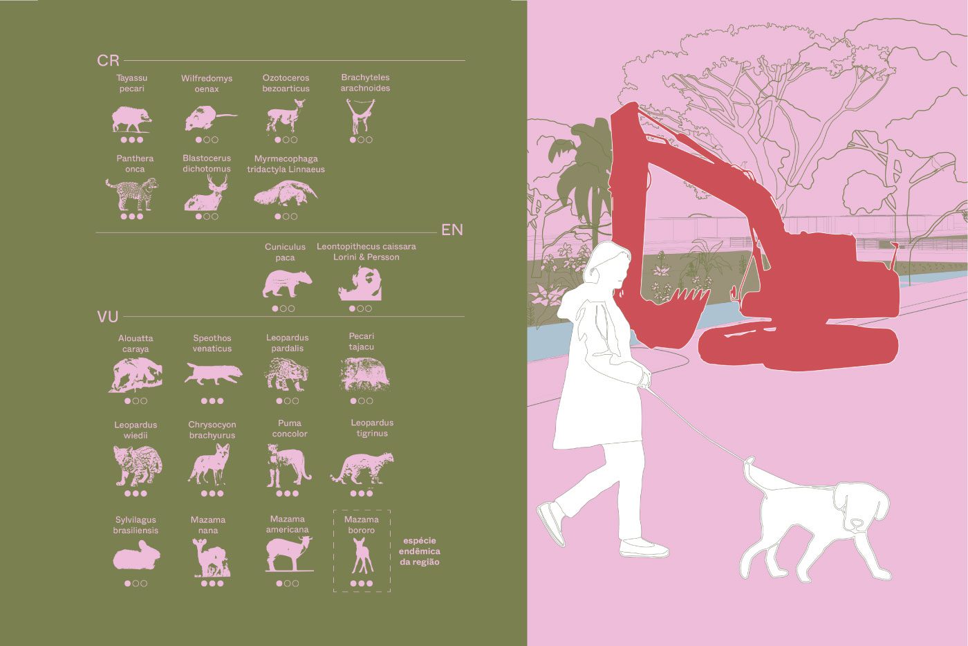 Mudanças climáticas, perda de biodiversidade e tantos desastres naturais nos alertam para o caminho de destruição que estamos traçando para a terra e, consequentemente, para nós mesmos. É necessário repensarmos muitas das nossas ações com a terra e reconhecer a importante luta dos povos tradicionais e do campo, os quais tem nos mostrado e ensinado outras formas de configurar urbanidades, o que reforça que não são todos os humanos que compactuam para a lógica antropocêntrica, mas sim o humano-urbano. O desenho multiespécie aparece aqui como possibilidade de repensar o processo projetual, compreendendo as cidades como espaços indissociáveis da natureza e incidindo em traços que vão além do exclusivismo humano. Compreender a relação entre humanos e não-humanos é aqui um ponto crucial do trabalho, confrontando assim as fronteiras desenvolvidas entre natureza e cultura – e todos seus derivados como campo e cidade, floresta e cidade, rural e urbano. Com isso, o trabalho voltou-se a elaborar uma rota de corredor ecológico conectando territórios indígenas de resistência na Região Metropolitana de Curitiba (RMC), reafirmando o compromisso do campo da Arquitetura e Urbanismo de contribuir para o habitar de outras espécies e de outras urbanidades. Após a definição da rota do corredor ecológico, aproximamos na escala do desenho uma área com maior intensidade de conflitos antrópicos para elaborar um traçado que considere o habitar de outras espécies, mudando a direção de ataque: a cidade não mais avançando sobre o meio ambiente, mas sim dando espaço para que ele adentre a sua malha e que novas relações entre humanos e mais-que-humanos se estabeleçam no território.