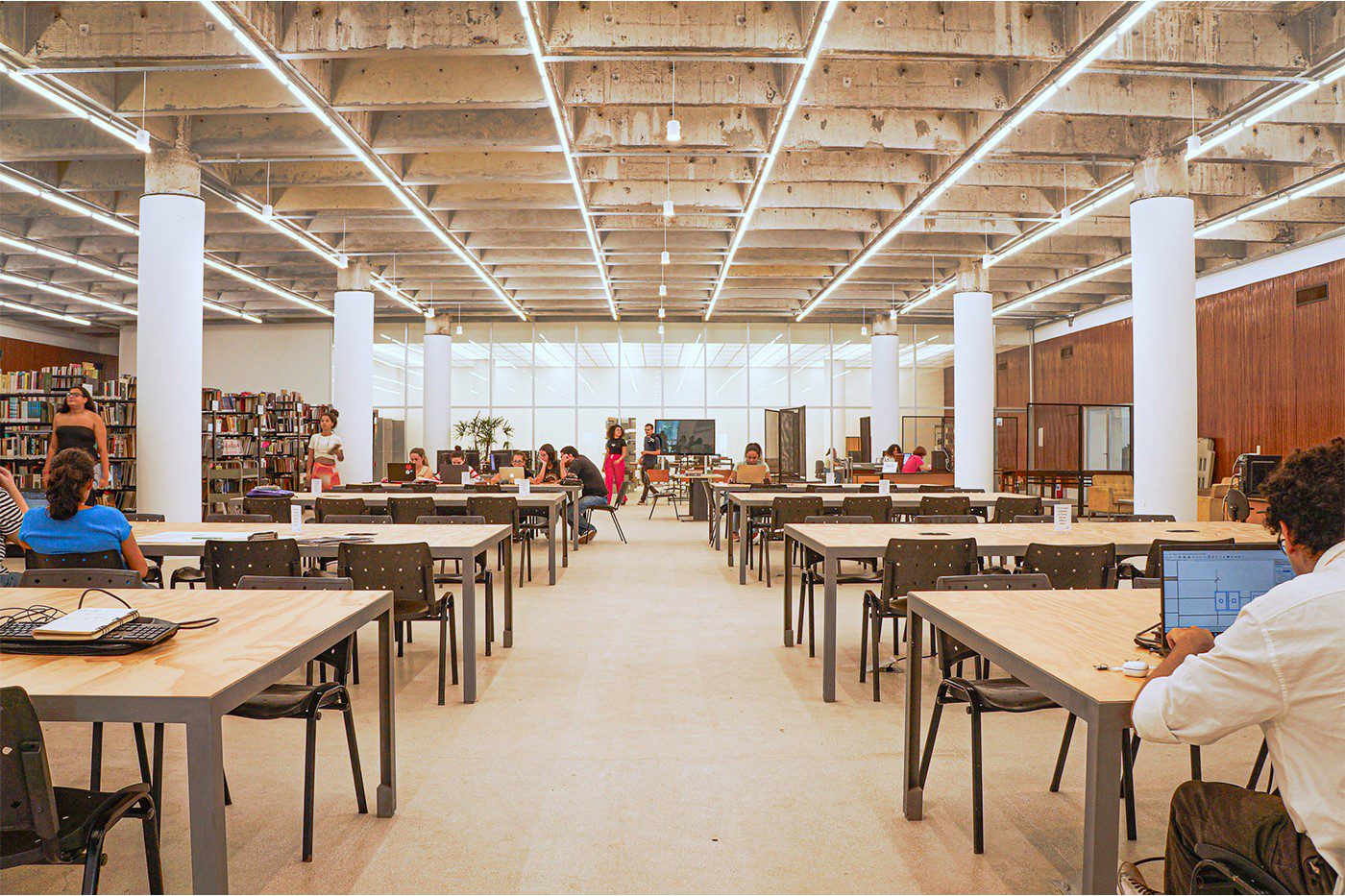 O resultado preserva a simplicidade compositiva e o caráter moderno do salão, agora equipado para receber acervo, consulta e estudo. Em julho de 2024, pela primeira vez desde a inauguração do JMM, entrou em operação no local uma biblioteca plena, abrigando uma das maiores coleções da América Latina em Arquitetura, Urbanismo, Artes Plásticas e Design.
