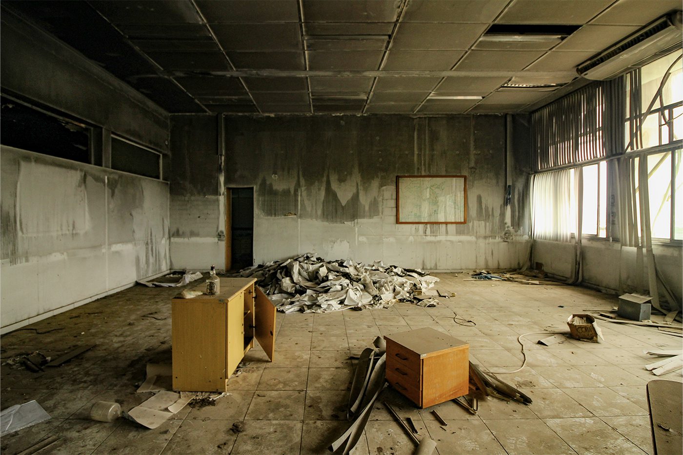 A primeira vistoria evidenciou o estado de ruína, mas, ainda assim, a clareza setorial, a planta aberta e a modulação estrutural do projeto original sustentaram a decisão de reconvertê-lo em biblioteca. A intervenção, conduzida em contexto de severa restrição orçamentária, adotou critérios de austeridade, mantendo elementos existentes sempre que possível e reinterpretando outros em materiais mais acessíveis, como o uso de granitina no piso e policarbonato alveolar no forro.