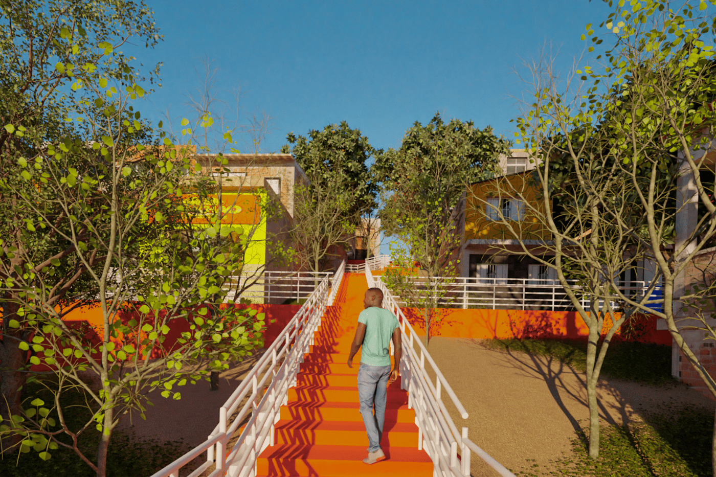 No projeto, foram propostas soluções que viabilizam a drenagem e saneamento básico, como alargamento das vielas, implantação de biovaletas e criação de espaço de apoio ao manejo de resíduos. Foram pensadas, ainda, a inserção de contenções, capazes de estabilizar as encostas frequentemente suscetíveis a deslizamentos, e a construção de escadarias, que promovem a mobilidade em áreas anteriormente intransponíveis.