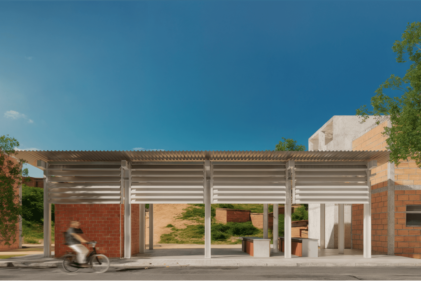 Entendendo que a justiça climática também se relaciona ao direito à cidade, foram projetadas áreas livres e de lazer usando-se de soluções baseadas na natureza, bem como foi proposta a implantação de equipamentos públicos. Para as moradias, em uma estratégia combinada de melhorias habitacionais e reassentamento próximo, foram pensadas soluções projetuais de condicionamento ambiental passivo para reformas e tipologias progressivas para novas habitações.