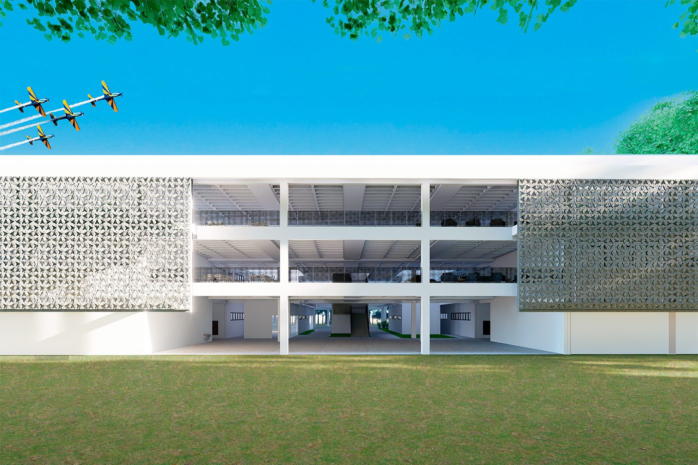 A proposta arquitetônica busca conciliar a preservação da memória com soluções contemporâneas. O plano diretor, elaborado pelo CEPE (Centro de Estudos e Projetos de Engenharia da Aeronáutica), prevê a requalificação do sítio histórico, aliando conservação patrimonial à inserção de novos volumes programáticos voltados ao ensino, à pesquisa e à vida acadêmica. O projeto promove a convivência entre o antigo e o novo, com uma setorização funcional pensada para eficiência, integração urbana e sustentabilidade.