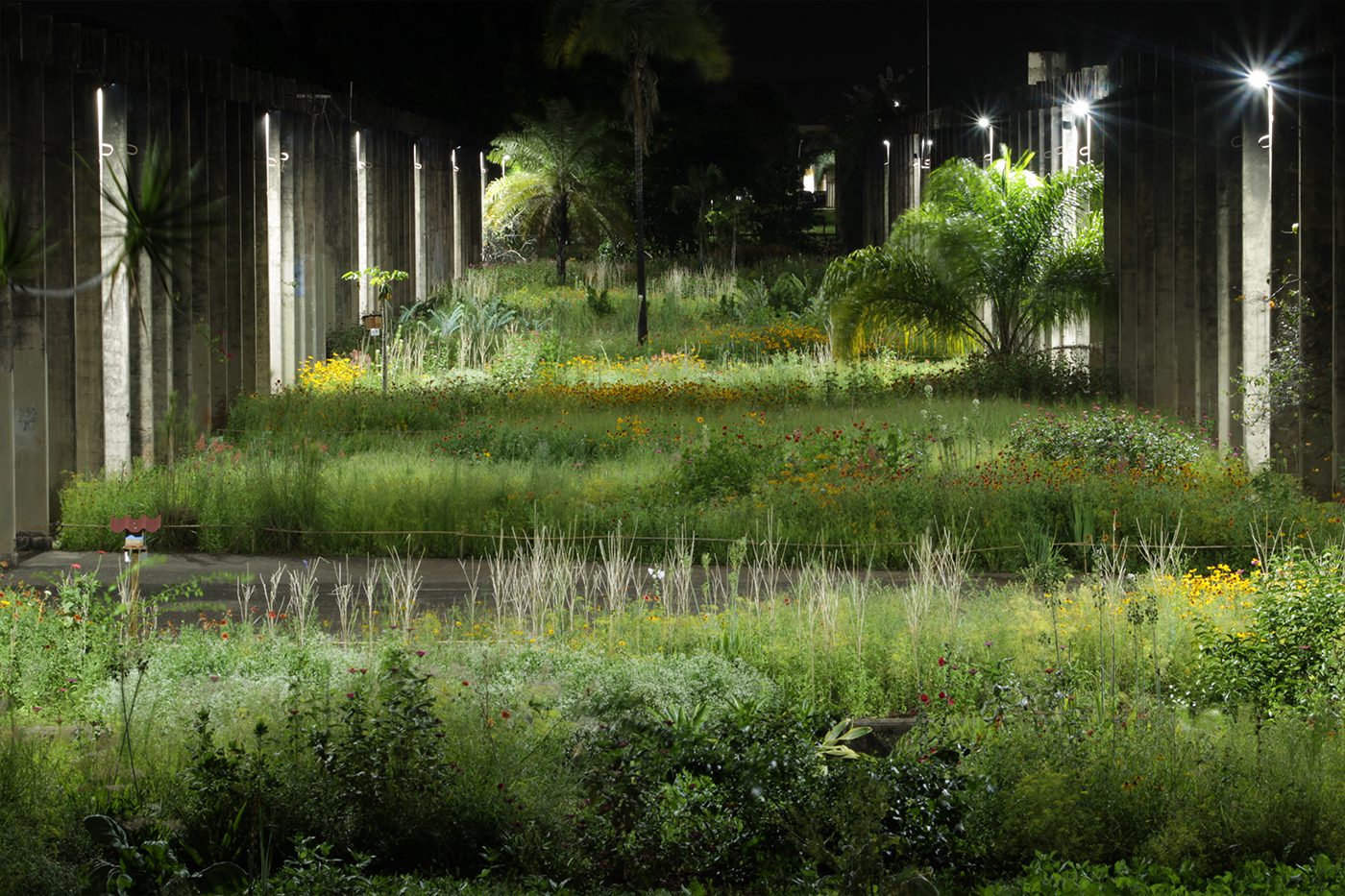 Suas flores ocupam o vão central do Instituto Central de Ciências (ICC) – edifício icônico da arquitetura moderna brasileira, projeto de Oscar Niemeyer e João Filgueiras Lima (Lelé), de 1962. Estende-se pelos módulos sequenciais do edifício, com 730 metros de comprimento por 15 metros de largura. Com mais de 5.000 m² de área plantada sobre laje, o jardim vive sobre uma fina camada de terra, sem irrigação. Com o fim das chuvas, suas sementes são colhidas para serem utilizadas no próximo ciclo. O jardim faz uso de flores de ciclo curto, exóticas, e capins nativos do Cerrado em composição naturalista, inspirada nas formações campestres do Cerrado.