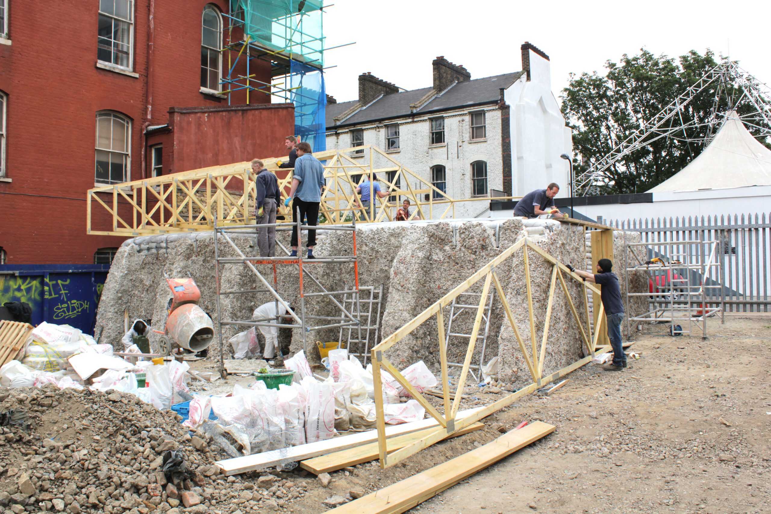 O debate Meios de Produção explora como o conhecimento arquitetônico é produzido por meio de uma variedade de mídias — desenho, filmes, publicações, encontros, maquetes, obras de arte e materiais de construção — e como essas formas moldam não apenas a arquitetura, mas também as comunidades e os imaginários ao seu redor. Indo além dos processos convencionais de projeto, as falas dos convidados consideram métodos de jogo, experimentação e participação coletiva como ferramentas vitais para reimaginar a produção material. Além de apresentar processos de projetos, as trajetórias de Jane Hall, Felipe Carnevalli, Mariana Meneghetti e da curadora Marcella Arruda, questiona como abordagens criativas e colaborativas podem desafiar as narrativas dominantes de progresso e, em vez disso, priorizar o cuidado, a resiliência e a justiça social. Arquiteturas para um mundo quente que se expressam através de esculturas sociais, projetos editoriais, intervenções espaciais e alianças com movimentos e comunidades, em processos colaborativos, experimentais e experienciais.