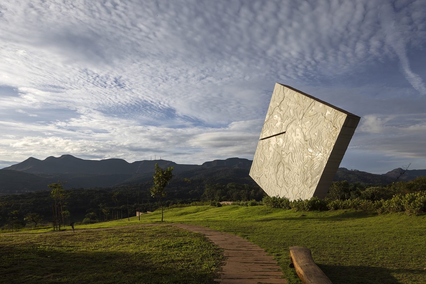 O projeto, assinado pelo arquiteto Gustavo Penna e sua equipe da Gustavo Penna Arquitetos Associados (GPAA), propõe um percurso simbólico e sensível que parte de um pavilhão de entrada em concreto pigmentado com rejeito da mineração. Suas formas angulosas e fragmentadas remetem ao choque do rompimento, enquanto feixes de luz atravessam as frestas e, todos os anos no exato horário da tragédia, iluminam uma drusa de cristais em homenagem às “joias”, como os familiares chamam seus entes queridos.