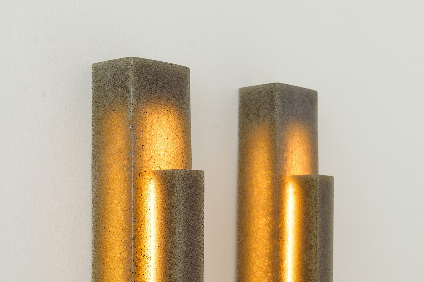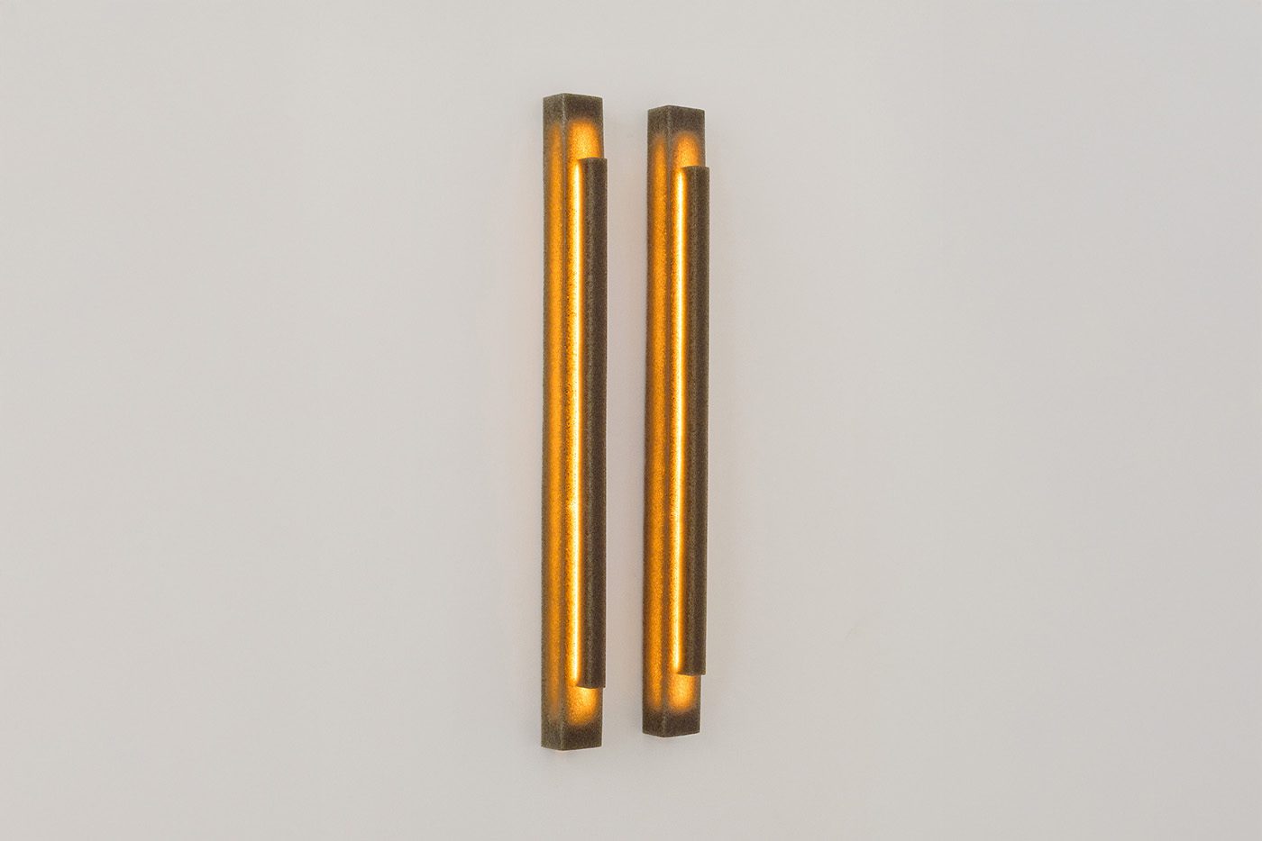 Na fase inicial, o estúdio concentrou-se na experimentação do biomaterial, buscando expandir seu uso além da aplicação tradicional como verniz em camadas finas. O objetivo era possibilitar a moldagem de grandes volumes do material. Dessa etapa, resultaram filtros de luz em tom âmbar — a cor natural da resina. Posteriormente, a pureza do material foi desafiada pela introdução de ar durante o processo de catalisação do material. O aumento de bolhas conferiu à resina um aspecto esbranquiçado e translúcido, possibilitando o desenvolvimento de membranas espumadas de formas orgânicas, usadas como difusores de luz.
