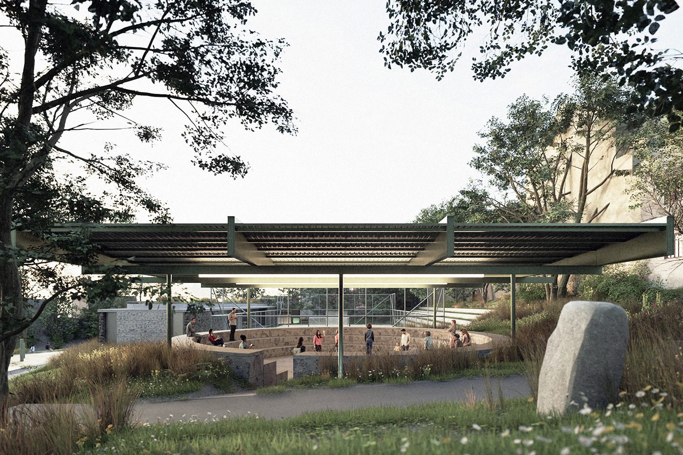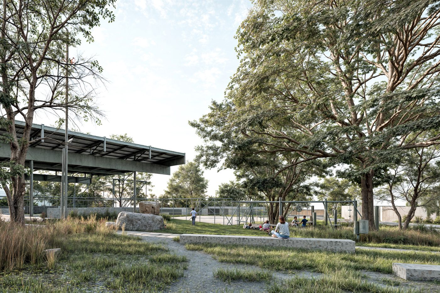 as áreas públicas e comunitárias definidas se destacam pelo potencial transformador da paisagem e enfatizam a importância dos espaços de centralidade e encontro.