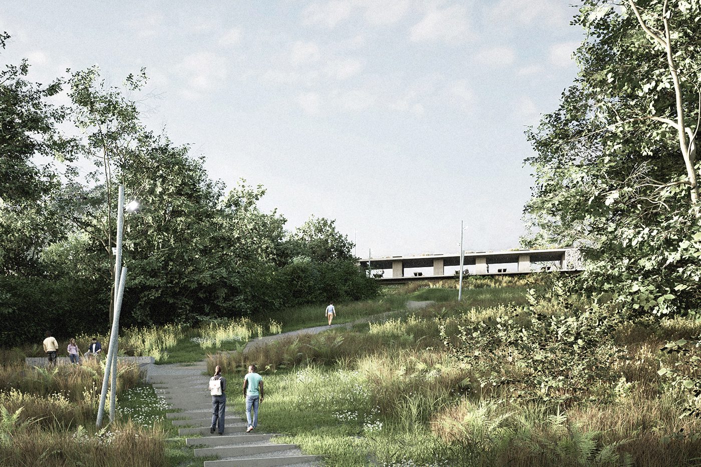 essa premissa se traduz em uma estratégia de projeto: uma oportunidade de construir elementos marcantes e permanentes, afirmando uma identidade comum a esta rede de espaços públicos.