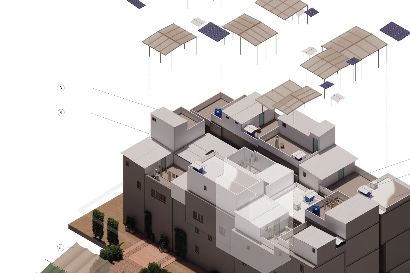 O SHAPES concentra-se na eficácia potencial de várias medidas de baixo custo e alto impacto em escala de construção, incluindo sombreamento leve e de origem local (estruturas de bambu com tecido), argamassas à base de cal, tintas solar-refletivas, revestimentos de edificações, ventilação adicional, estruturas de sombra, plantio seletivo onde viável, e pequenas instalações de energia solar fotovoltaica para manter ventiladores e iluminação essenciais durante apagões da rede elétrica. Essas intervenções são entregues como parte de uma ação comunitária mais ampla liderada pela comunidade.